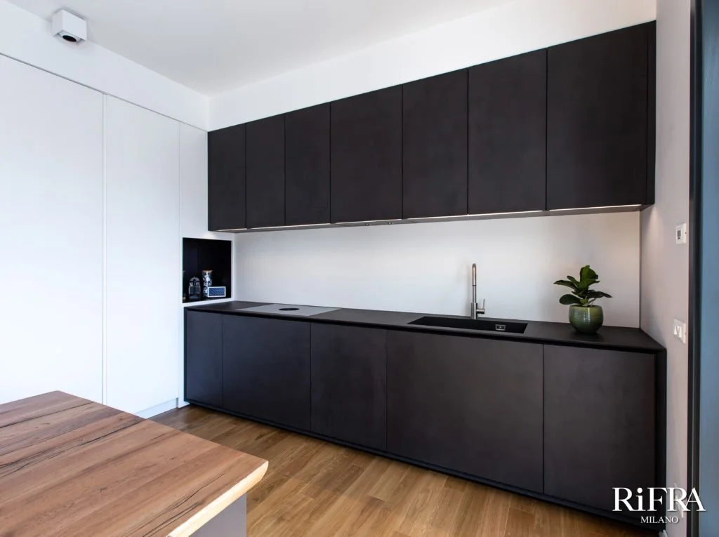 RiFRA collaborated by exalting the design also internally, by furnishing the kitchen and bathrooms of this flat.