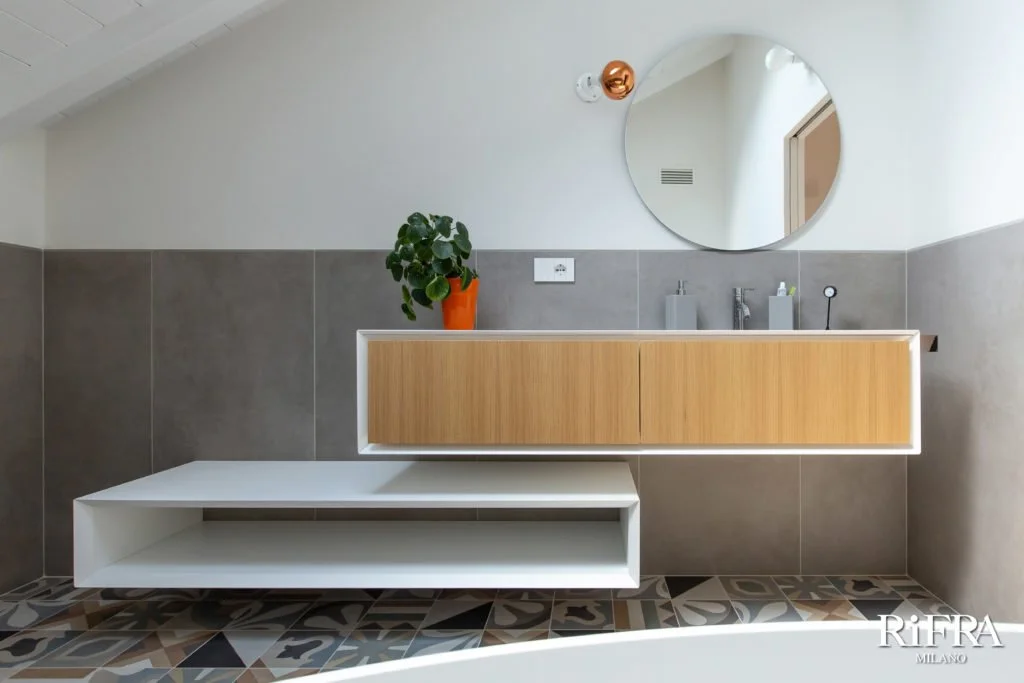 We are in Italy, close to the Como lake, where Alessandra, the owner of this house has carried out a complete renovation. She has furnished the kitchen, the bathrooms and the walk-in wardrobe with RiFRA's proposals.