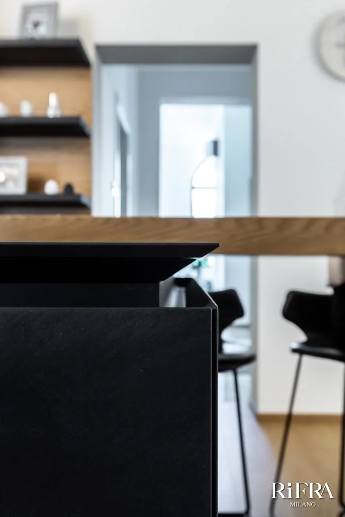 Our client's needs were to have storage and different worktops, without sacrificing the design and style of a RiFRA kitchen; in short, to make a functional kitchen without renouncing aesthetics.